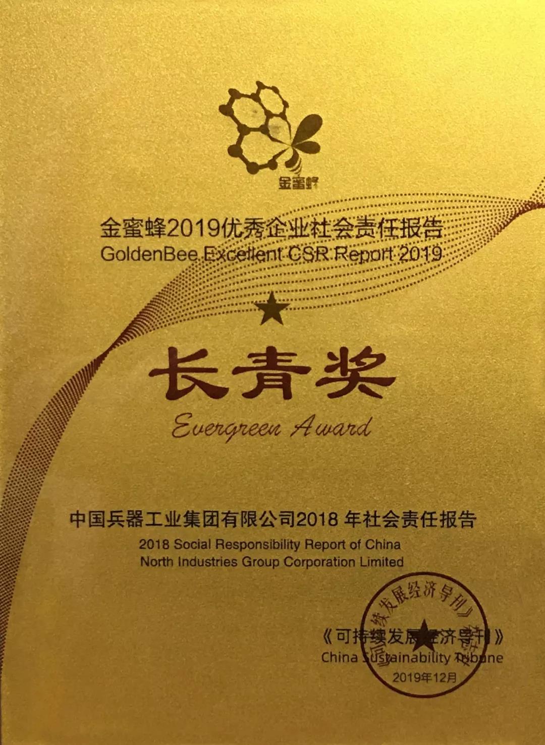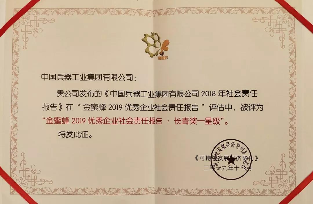 12月5日,在第十二屆中國企業(yè)社會責任報告國際研討會發(fā)布的“金蜜蜂2019優(yōu)秀企業(yè)社會責任報告榜”上,《中國兵器工業(yè)集團有限公司2018年社會責任報告》從近1600份報告中脫穎而出,連續(xù)第二年榮獲“金蜜蜂優(yōu)秀企業(yè)社會責任報告·長青獎”。同時,也是連續(xù)第6年獲得優(yōu)秀企業(yè)社會責任報告獎項。