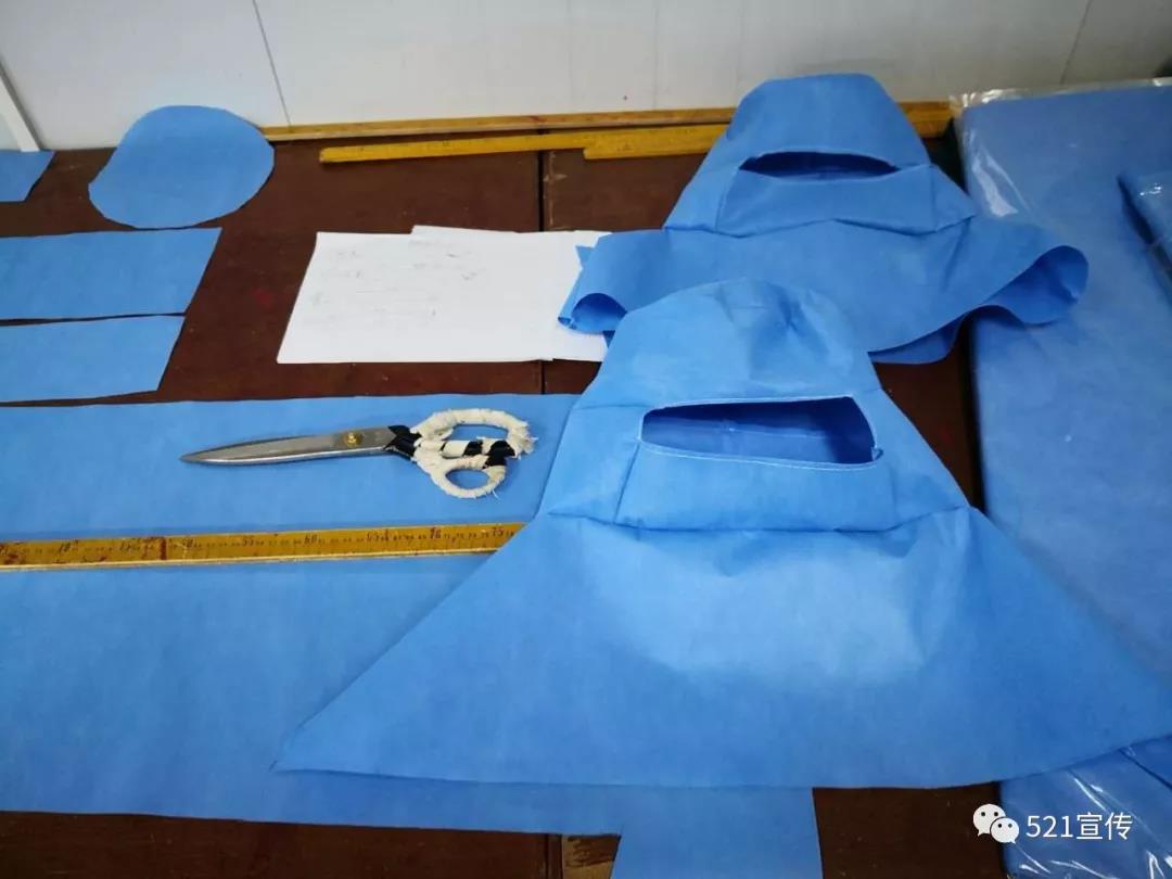 為了解決防護服短缺的問題,保護一線醫護人員安全,521醫院后勤保障處經與醫院疫情防控指揮部聯系,在查看了國標醫用防護服后,計劃利用醫用無紡布自己加工醫用防護服。
