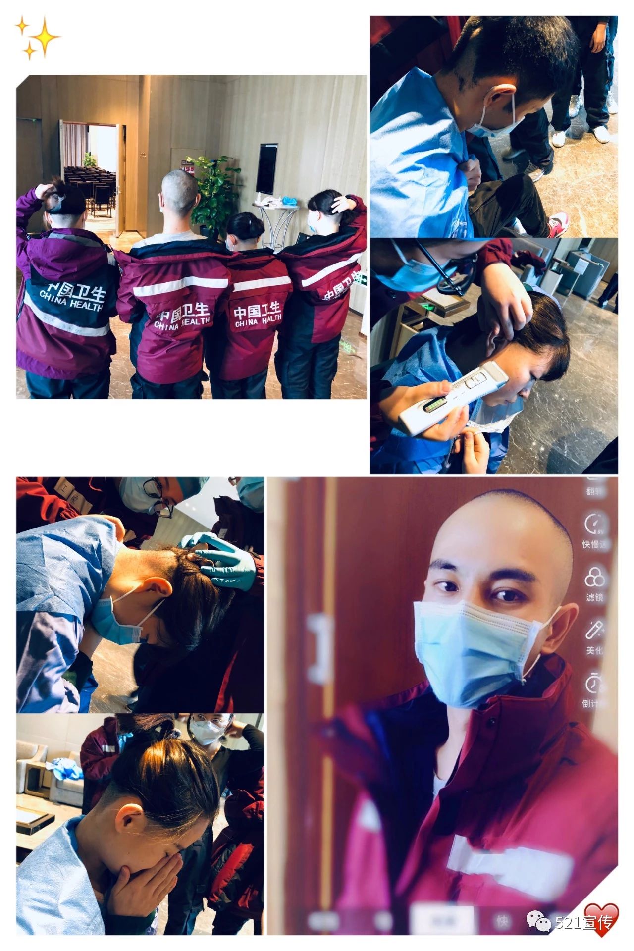 秀麗的長發、帥氣的發型,對于年輕人保持美好形象十分重要,看著心愛的頭發一點點剪下,隊員們卻說:“短點、再短點,大不了再長唄!”“和疫情相比,這點犧牲實在不算什么。”