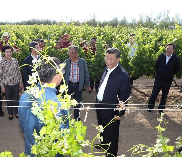 習(xí)近平總書記9日在銀川考察調(diào)研。他先后來到賀蘭縣稻漁空間鄉(xiāng)村生態(tài)觀光園、賀蘭山東麓葡萄種植園,了解當(dāng)?shù)匕l(fā)展特色農(nóng)業(yè)產(chǎn)業(yè)、加強賀蘭山生態(tài)保護等情況。