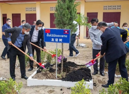 活動期間,北方國際項目部為安居村小學捐贈書畫教室課桌椅等教學用具,并組織書法和繪畫老師為小學生授課,舉辦書畫比賽,評選優秀作品進行展覽。老撾公共工程與運輸部部長榮沙瓦從中方代表手中接過象征搬遷入住的鑰匙,并共同種下象征友誼的柏樹。