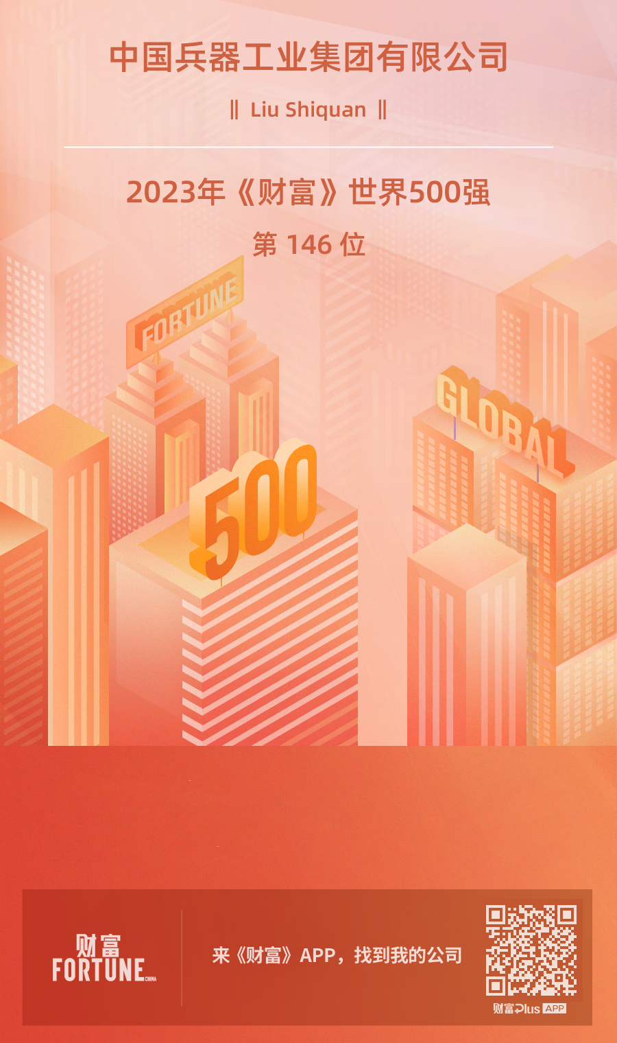 8月2日,2023年《財富》世界500強排行榜正式發布,中國兵器工業集團有限公司以826.89億美元的營業收入排名第146位,連續第14年入榜。