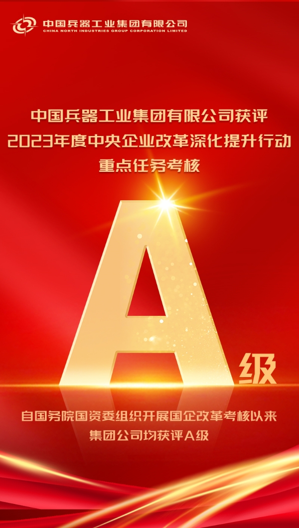 近日,國(guó)務(wù)院國(guó)資委印發(fā)2023年度中央企業(yè)改革深化提升行動(dòng)重點(diǎn)任務(wù)考核結(jié)果,中國(guó)兵器工業(yè)集團(tuán)有限公司獲得A級(jí)。自國(guó)務(wù)院國(guó)資委組織開(kāi)展國(guó)企改革考核以來(lái),集團(tuán)公司均獲評(píng)A級(jí)。