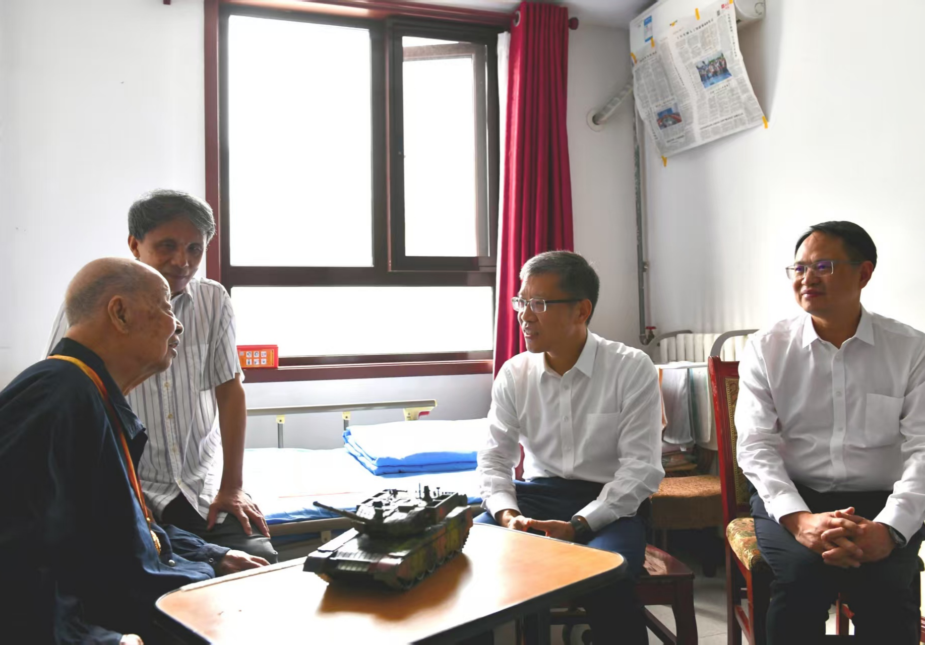 8月28日,在紀念中國人民抗日戰爭暨世界反法西斯戰爭勝利80周年之際,中國兵器工業集團有限公司黨組書記、董事長周治平看望慰問抗戰老戰士苑紀同志,代表集團公司黨組向全系統抗戰老戰士、老同志致以崇高敬意和誠摯問候。集團公司黨組成員、副總經理葉文華一同參加。